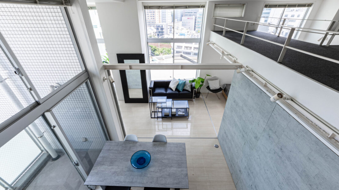 室内は、二面採光・天井高4mある広々とした空間。大きな窓からは新宿の景色を一望できるため海外のペントハウスにいるような雰囲気で撮影ができます。日が暮れてからの撮影もおすすめです。