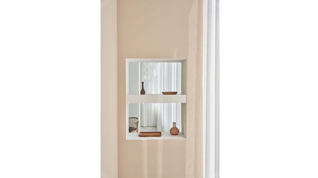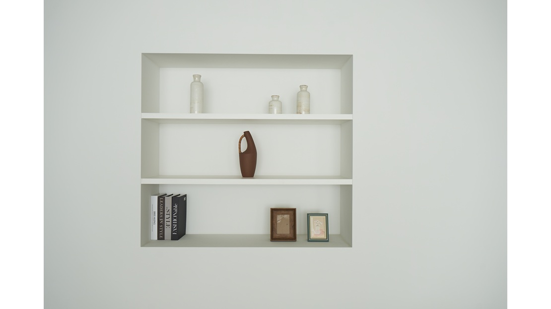 最大の魅力は、大きな窓から降り注ぐ豊かな自然光。時間とともに表情を変える光が、シーンに豊かなニュアンスを与えます。淡いトーンの背景、クリーンな白壁、温もりある木壁、そして空間に奥行きを持たせるニッチ棚を配置し、ひとつのフロアで多彩なビジュアル表現が可能です。