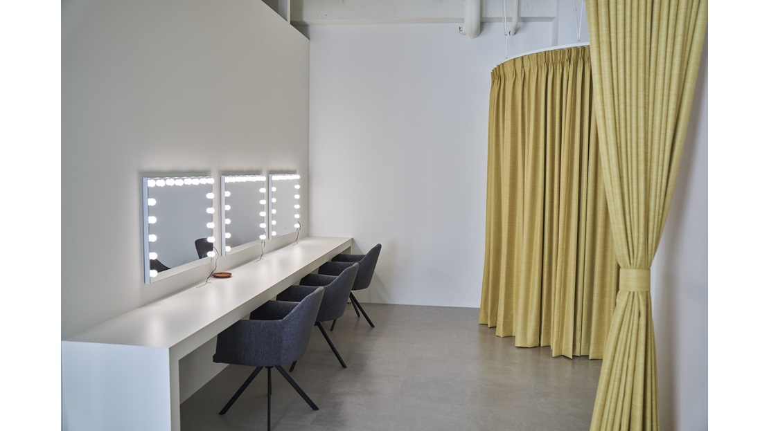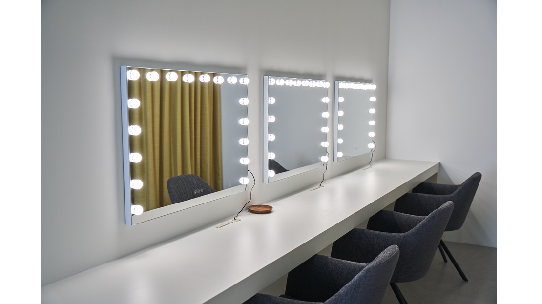 演者様やスタッフの皆様がストレスなく過ごせるよう、3名同時利用が可能なゆとりあるメイクルームや男女別トイレを完備。日々の清掃・管理を徹底し、常にクリーンで安心できる環境をお約束します。